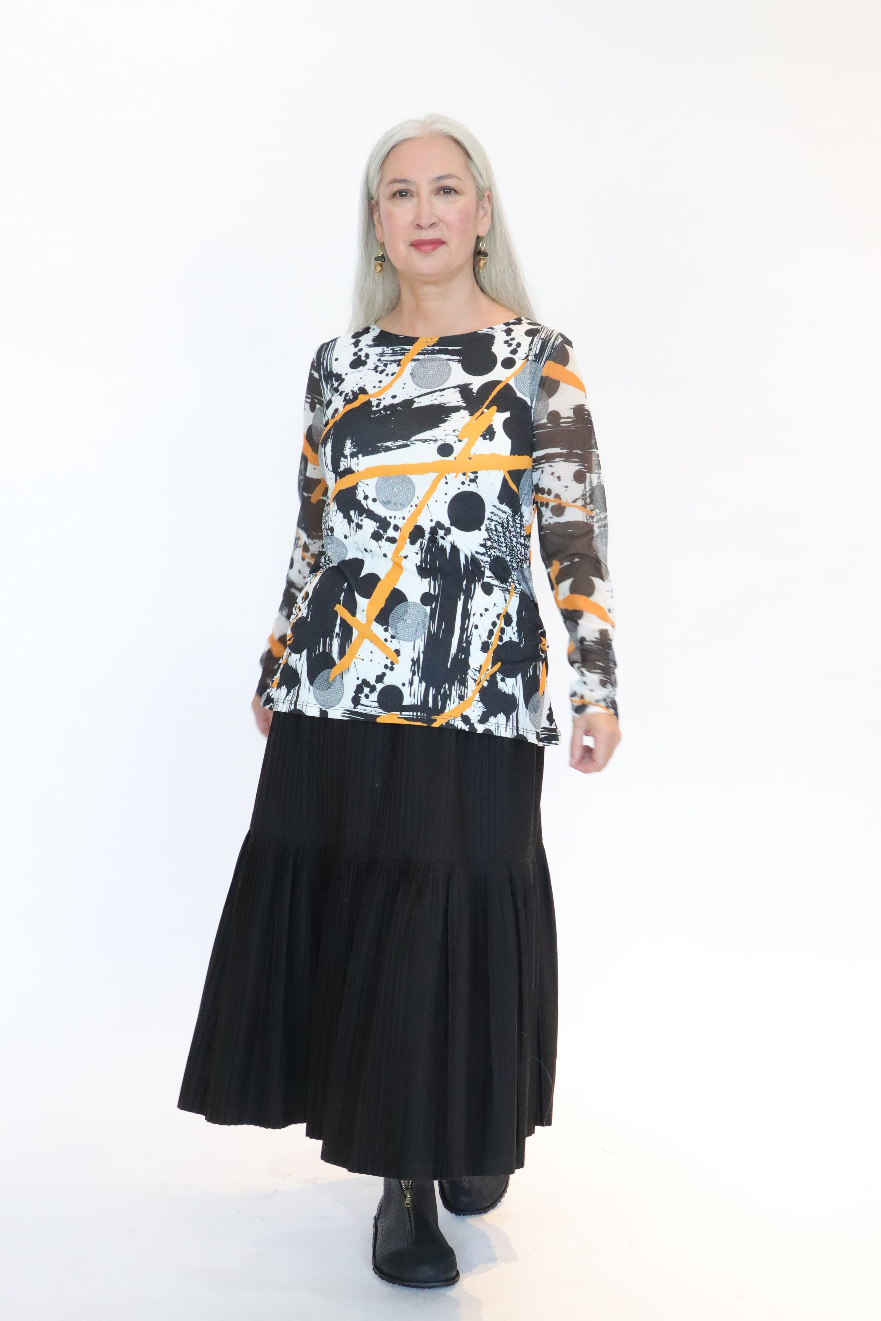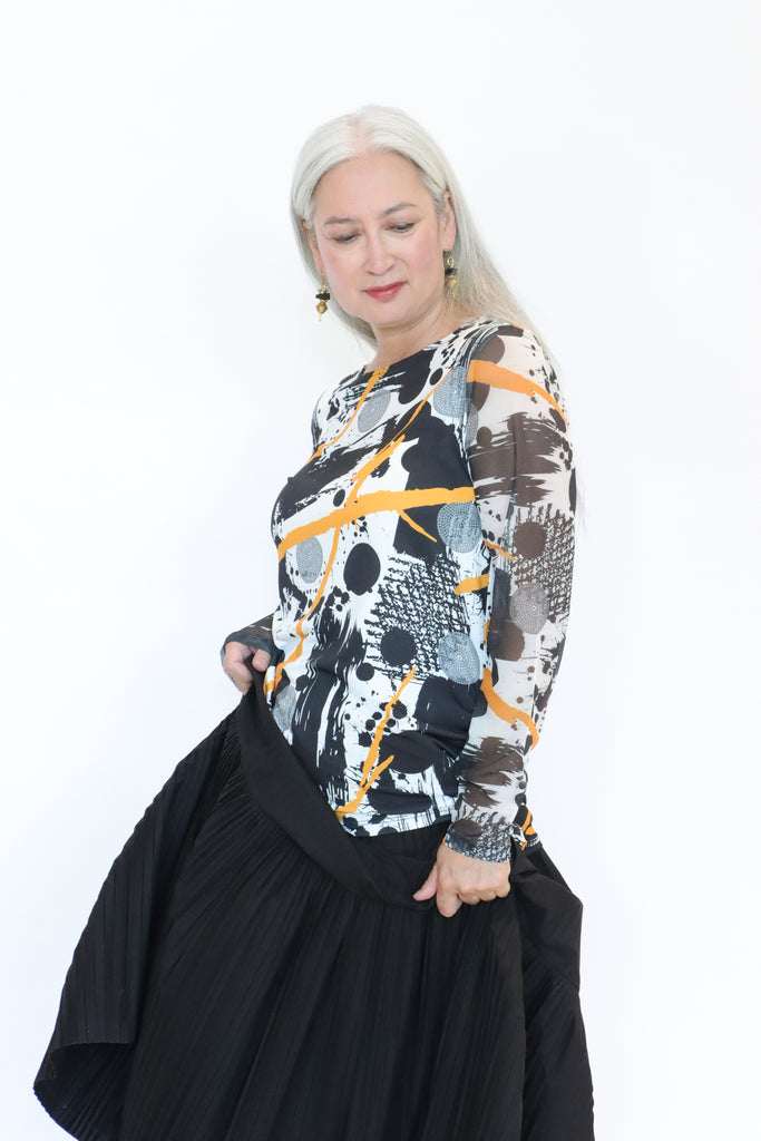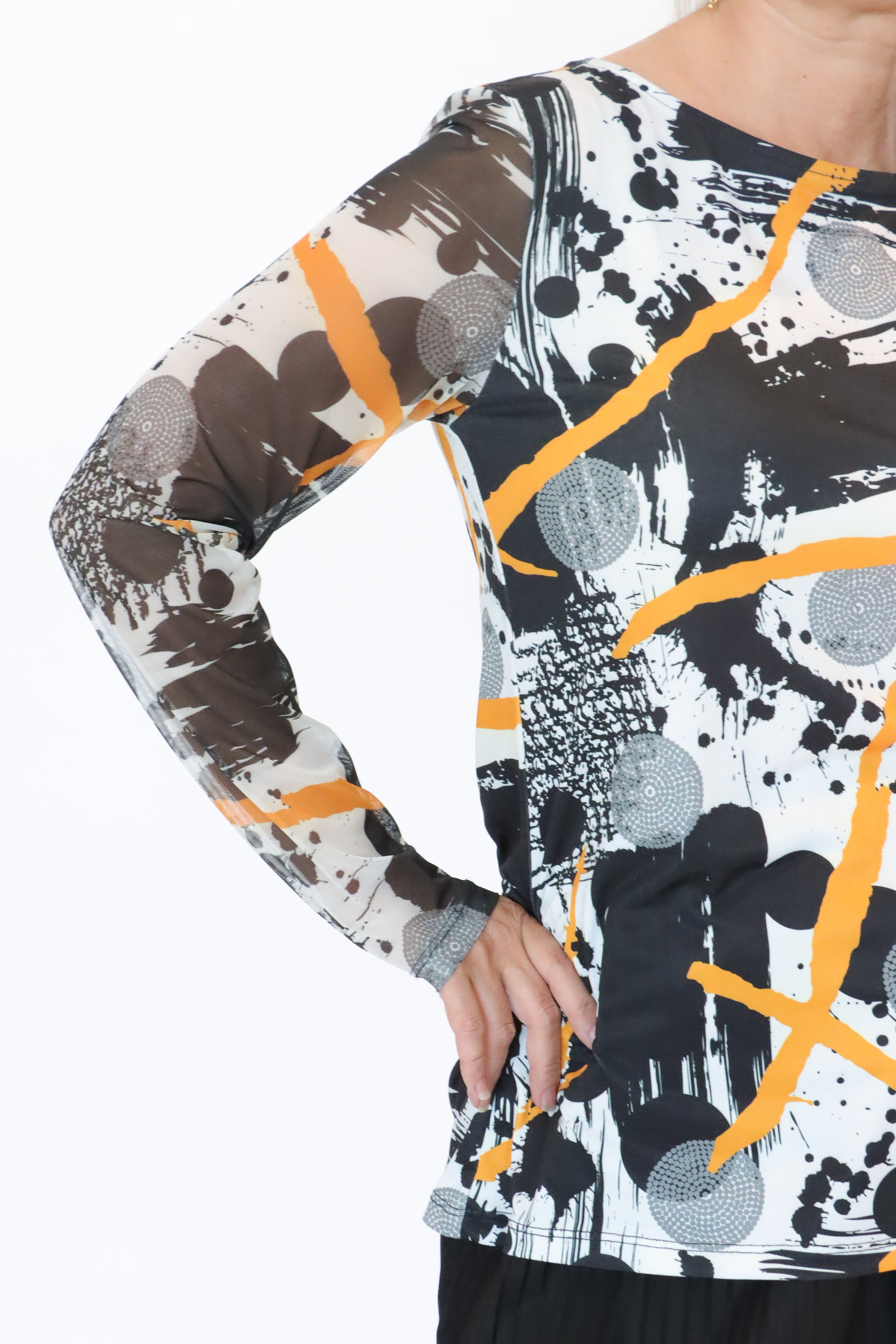 - Inset mesh long sleeves