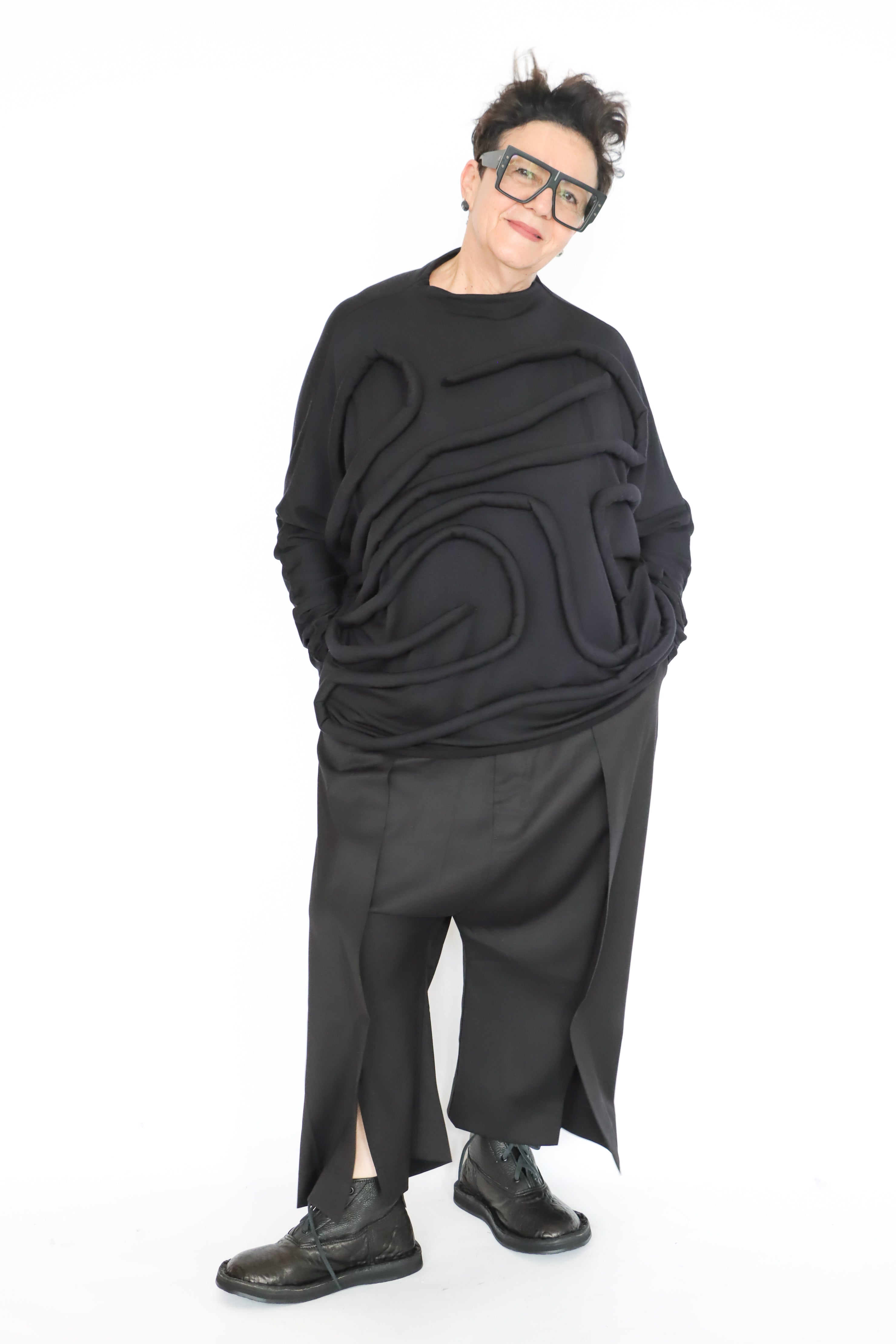 - Front pleats with bottom slits