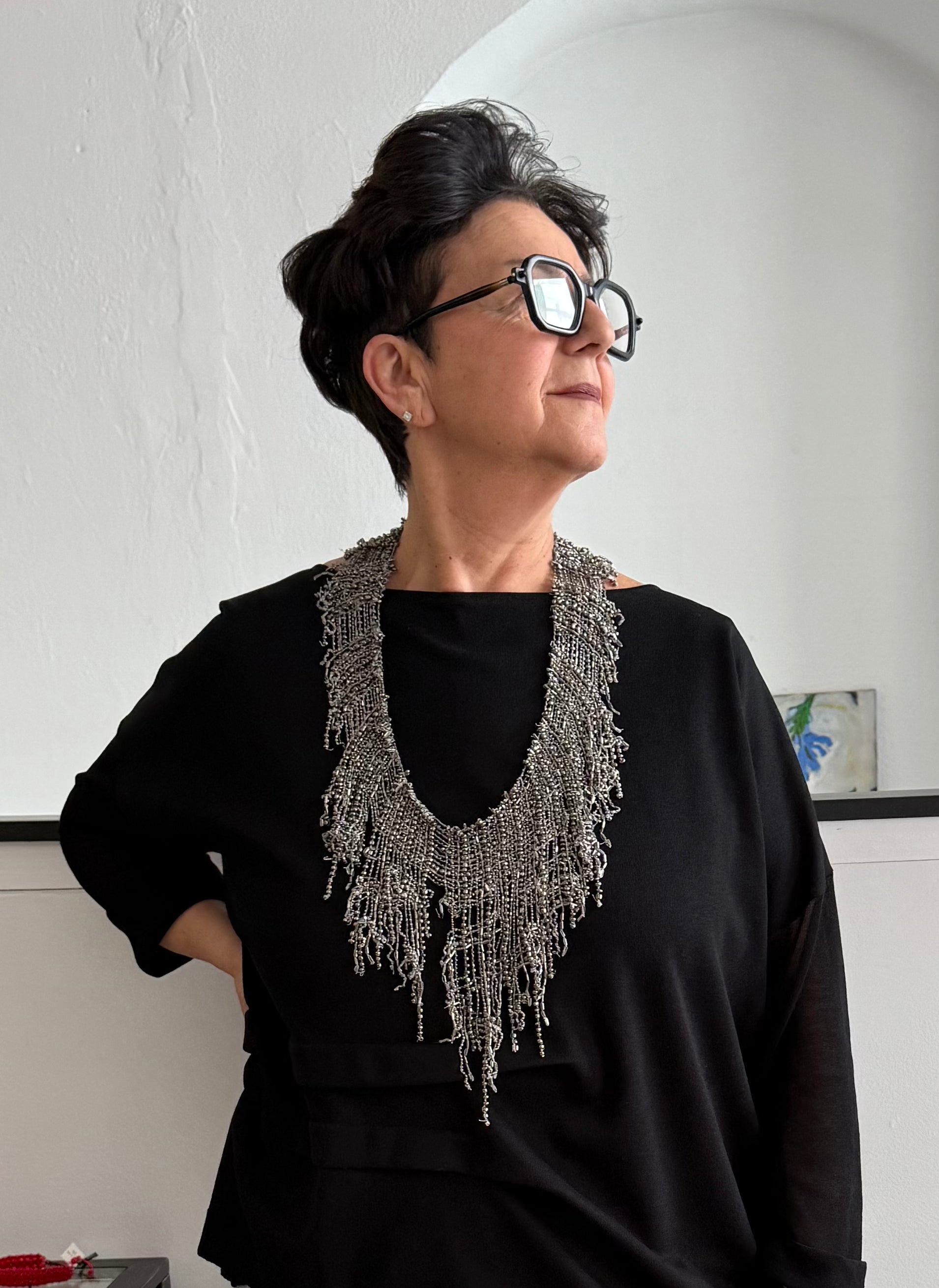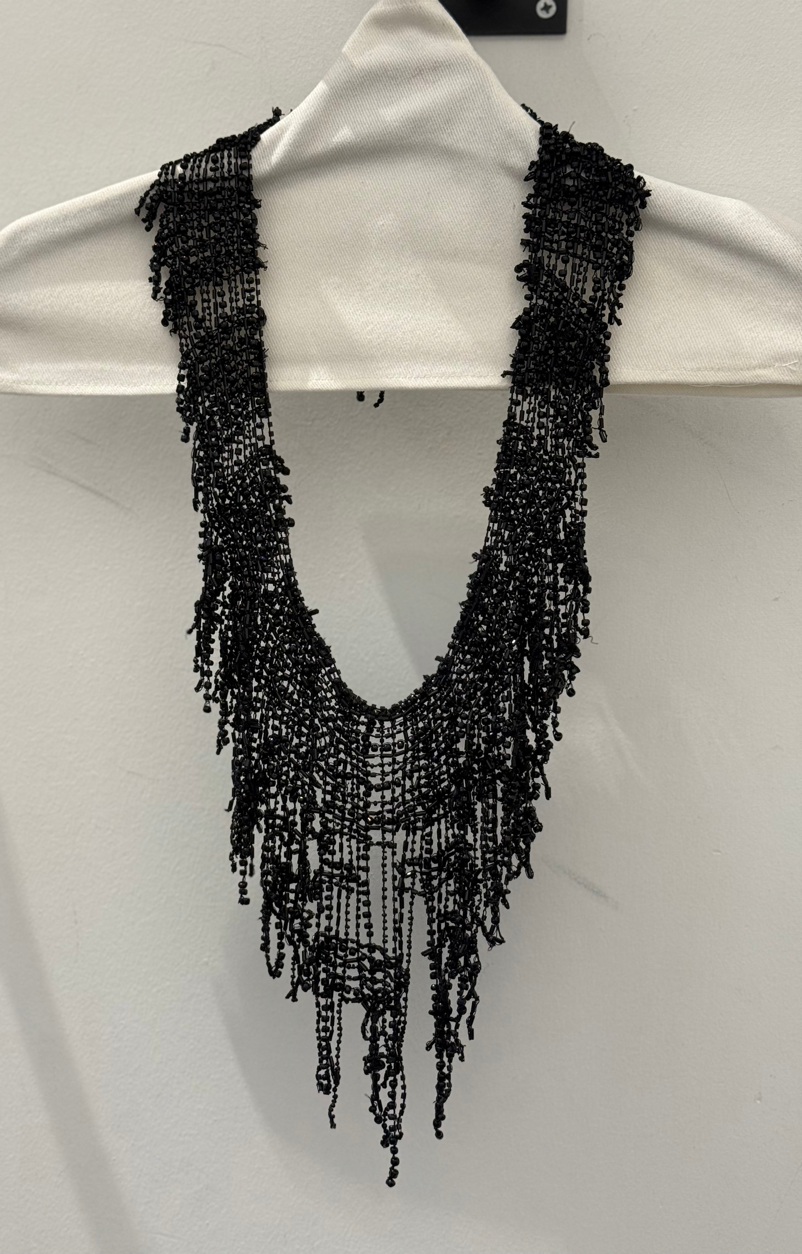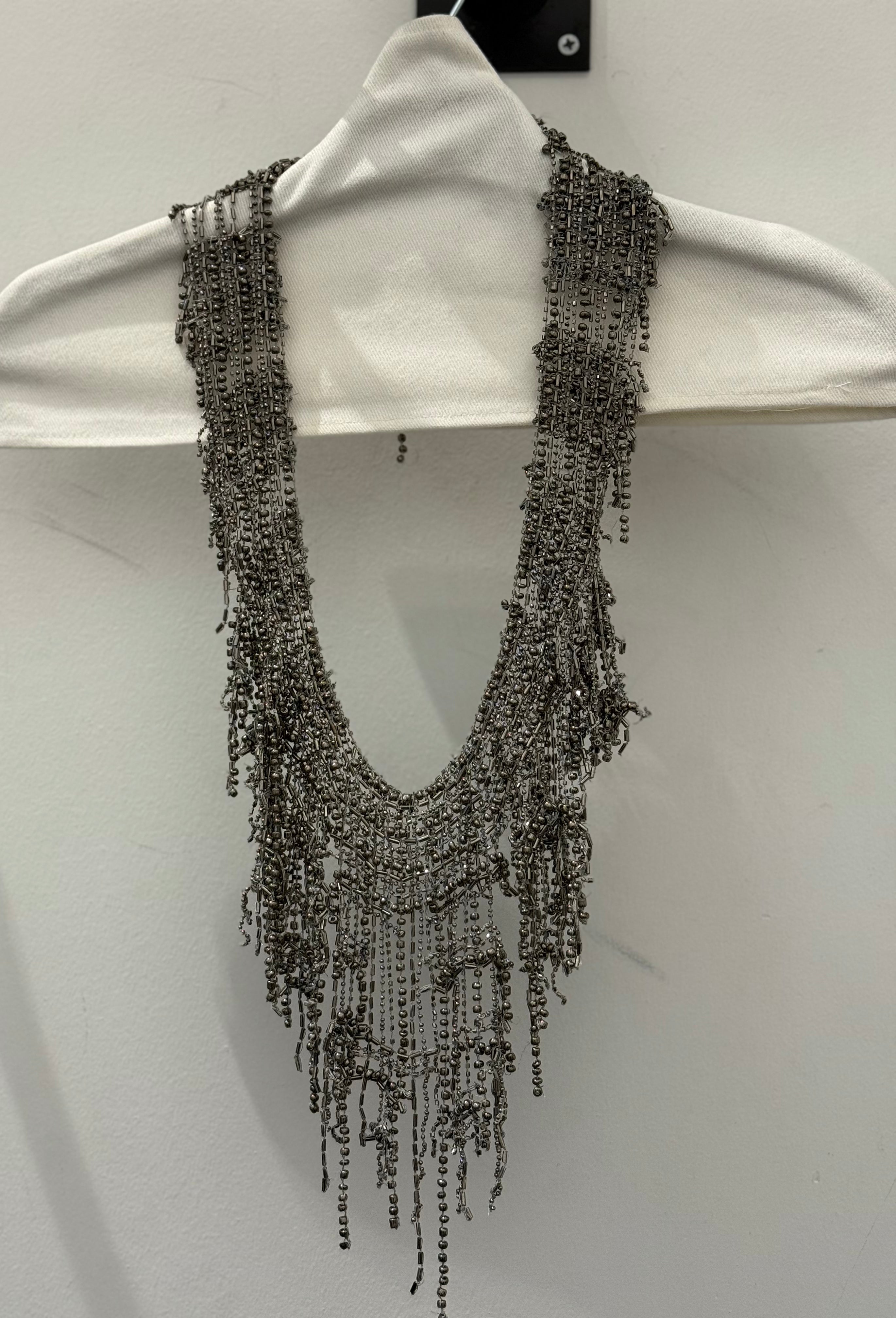 Hand embroidered cascade of glass beads and pearls