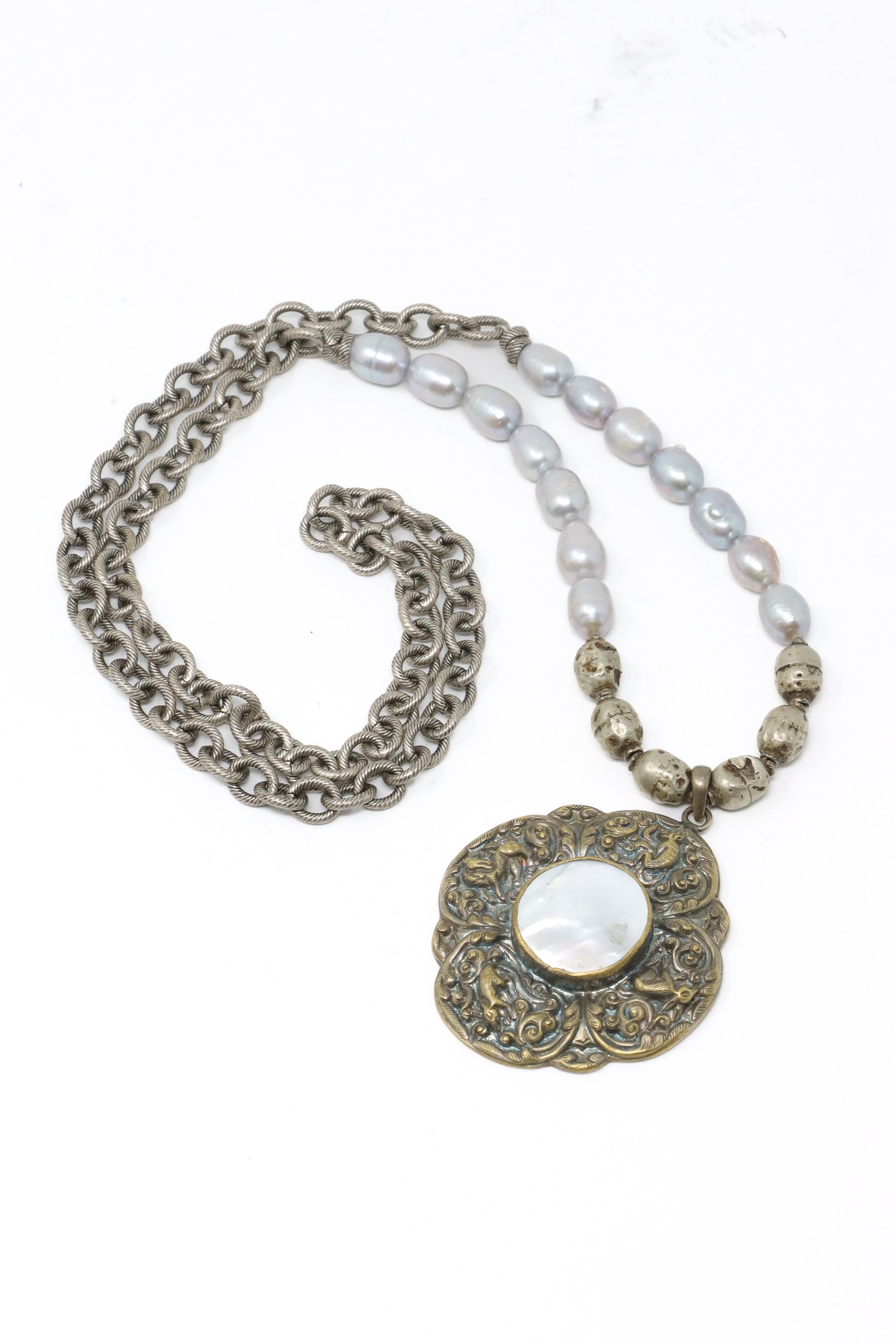 Material: pearl, vintage Ethiopian prayer beads, silver
