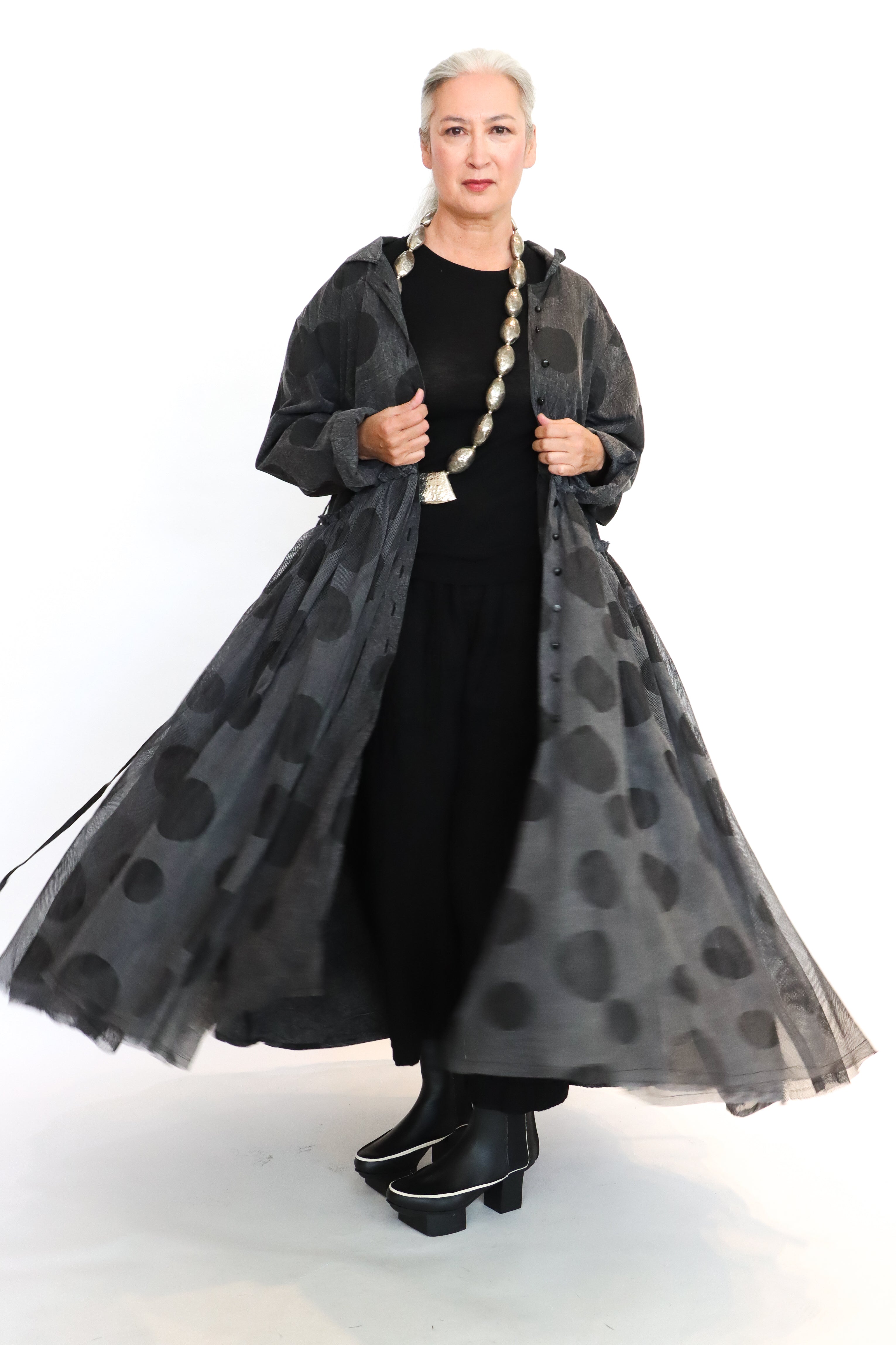 Designed to stand-out with a distinctive bold pattern and dramatic silhouette, the Krista Larson Foundation Coat/Dress is a versatile statement piece.