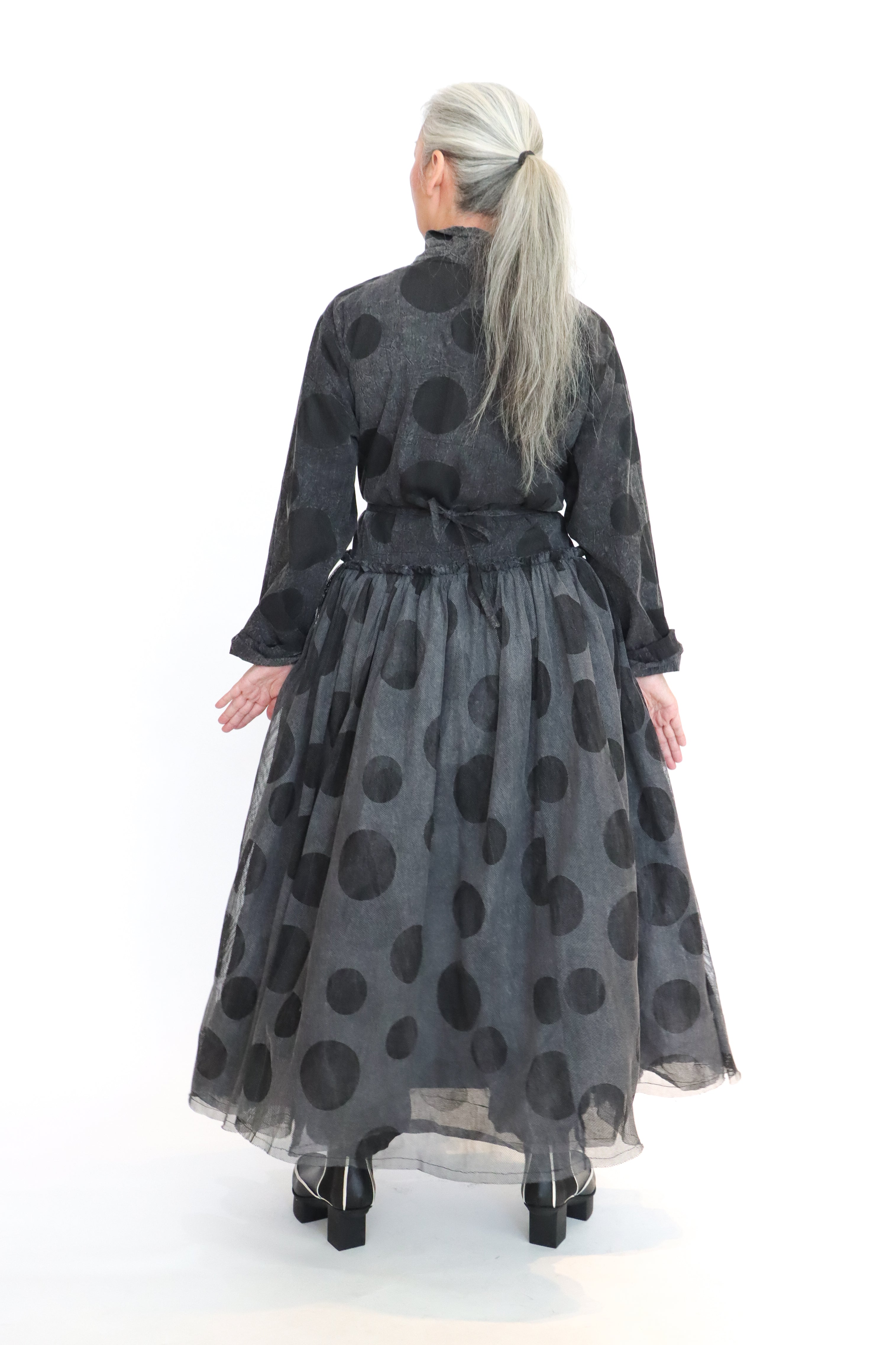 - 3 layers of cotton, tule and organza gathered along waist