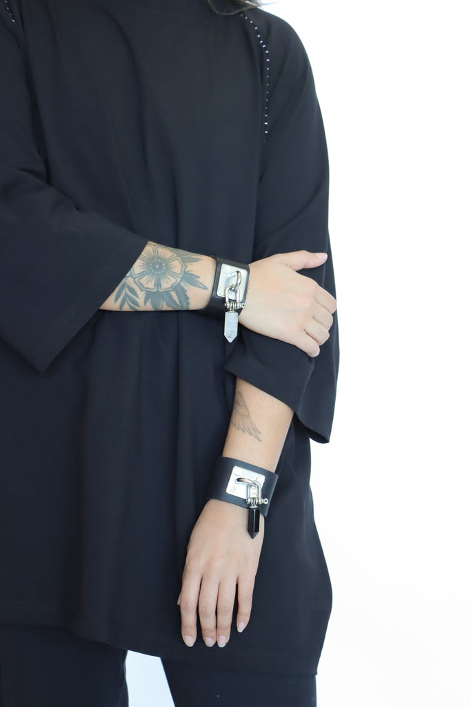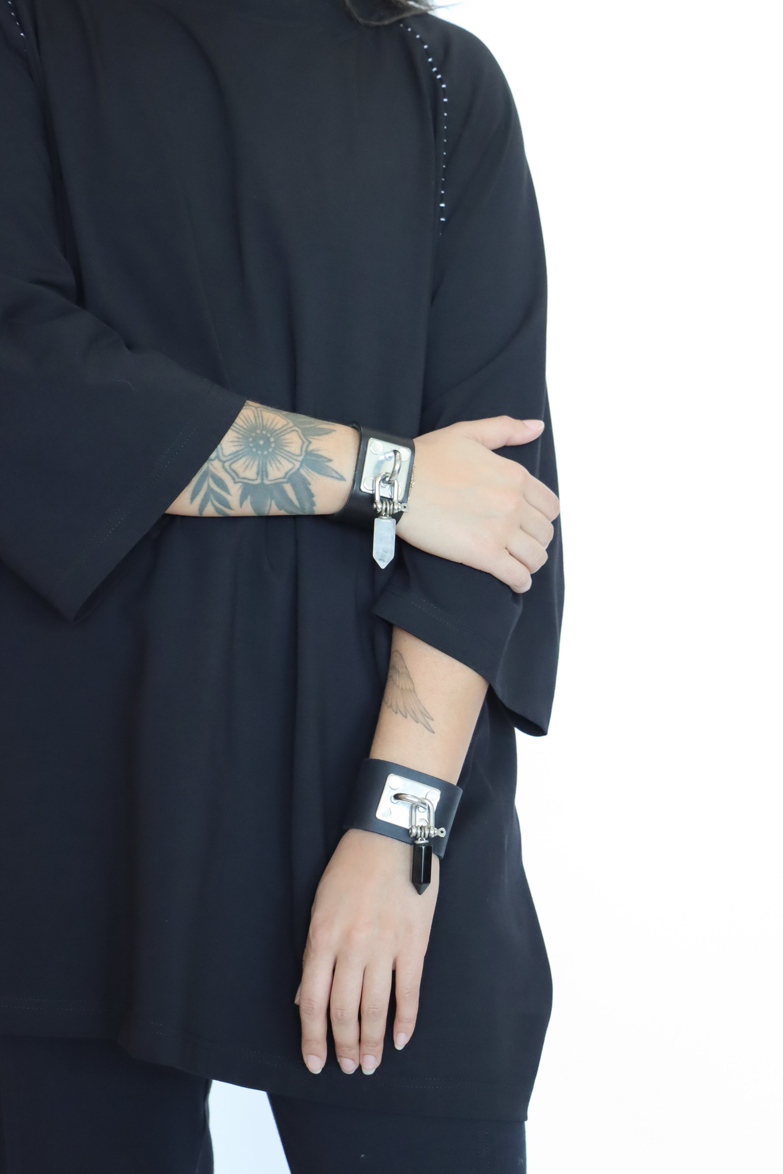 The Mya Lambrecht Crystal Cuff is a statement piece that balances the body and mind.