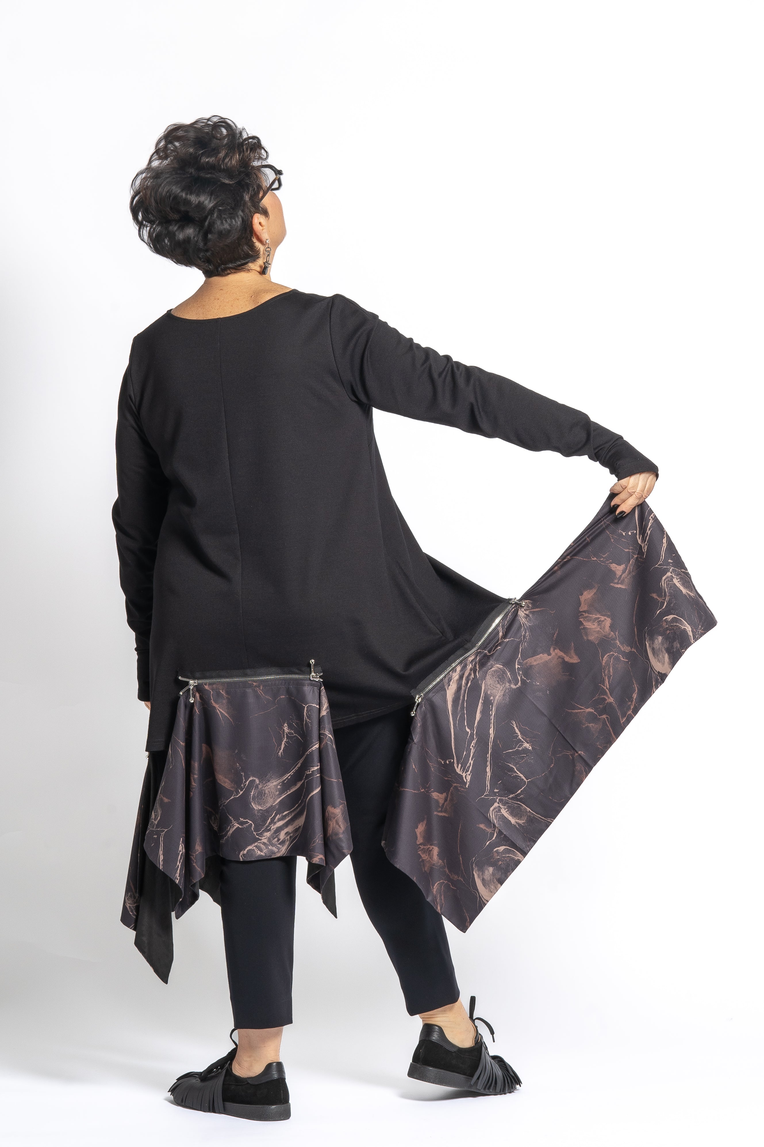 - Removable handkerchief zippered contrast panels